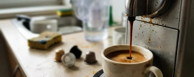 Mange kontoransatte bemærker en mærkelig smag i deres morgenespresso efter en weekend, og årsagen er ofte trivielle ophobninger inde i tanke og rør.