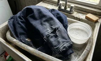 Under det beskadigede lag maling fint støv og snavs fra dine lommer.