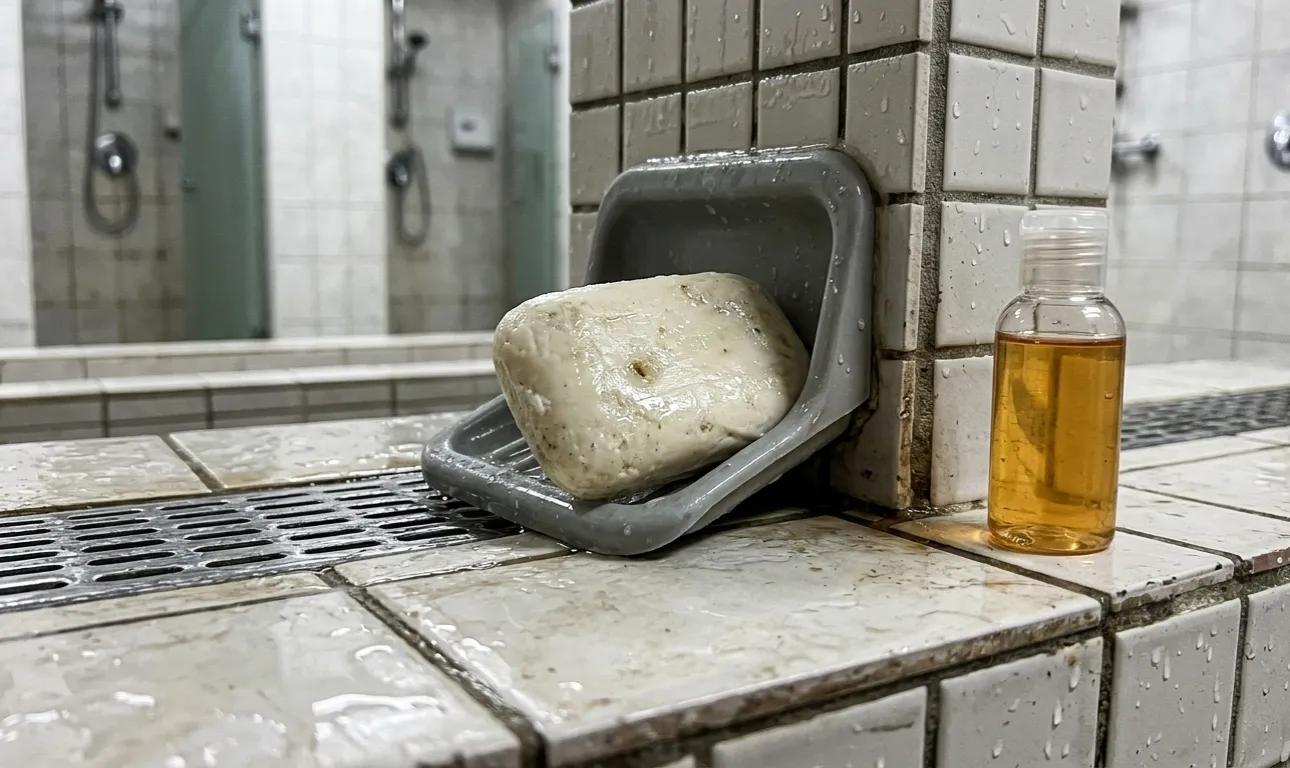 Jeg testede forskellige muligheder og besluttede mig for en kombination af miniflasker og papirsæbeplader. Det eliminerer fuldstændig enhver kontakt med andres kosmetik. Skift til lukket personlige produkter løser øjeblikkeligt alle tvivlsspørgsmål i brusebadet.